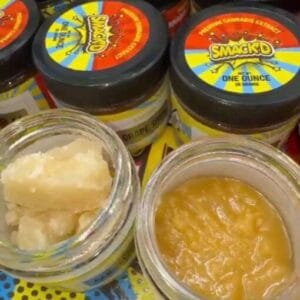 Snooze Drool badder x suger concentrates in one oz baller jars